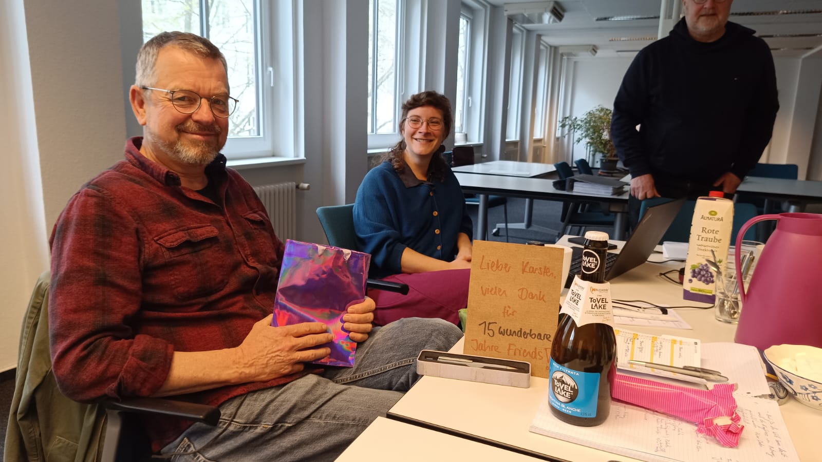 Des Weiteren durften wir unserem Nord-Süd-Koordinator Karsten Glückwünsche für sein 15-jähriges Dienstjubiläum bei den Friends überbringen. Schön, dass du schon so lange bei uns bist!